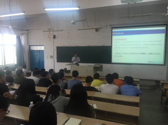 郭一鸣老师首先简明扼要的说明毕业论文撰写的重要性,重点介绍了毕业论文的结构、写法以及要求,并就如何进行论文写作为同学们进行了实例分析,加深同学们对论文撰写的深入理解。