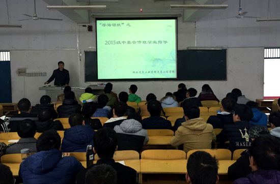 12月9日下午在2401教室,罗永革副校长给中英合作班学子开了一场别开生面的学业指导课,参加此次指导课的还有英国威廉集团副院长李楚琳、中英班班主任曾红燕老师以及15级辅导员朱政老师。