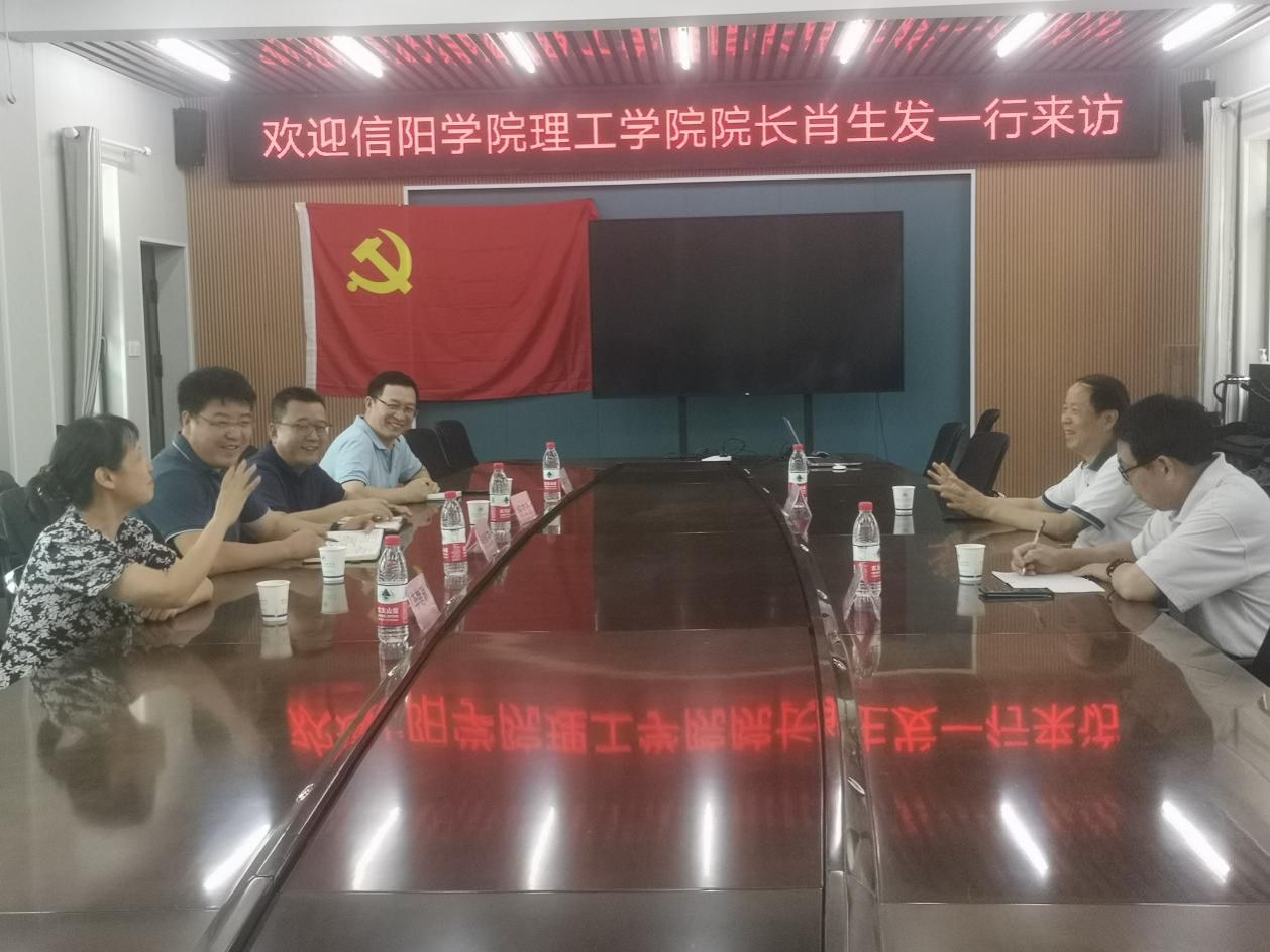 8月22日上午10点,信阳学院理工学院院长肖生发、任柏林来访交流,汽车学院胡明茂院长、杨亚会书记、李楚琳、邓召文等老师在学院二楼大会议室接待了肖生发一行。