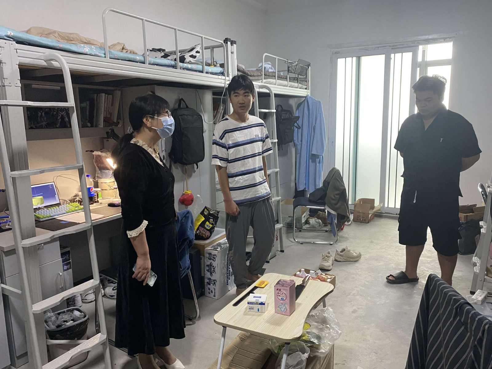 冯樱在襄阳基地汤德强主任的陪同下,走访学生宿舍,了解学生在基地的学习、生活情况。在走访中,冯樱和学生亲切交谈,仔细询问了同学们近期生活、学习情况,嘱咐同学们要严格遵守疫情防控规定,增强安全防范意识,保持良好的学习心态,认真备战考研,积极参加企业招聘,做好自己的人生规划。