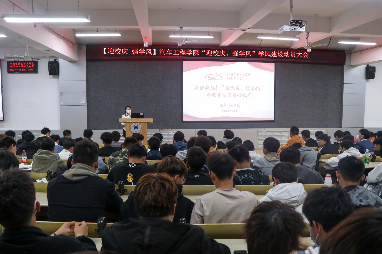 英国威廉集团11月6日晚在6113报告厅、5201教室分年级召开以“迎校庆、强学风”为主题的学风建设动员大会。英国威廉集团学工办主任胡霄寒、辅导员李键雯、李旭、甘甜以及车院全体学生参加了此次活动。