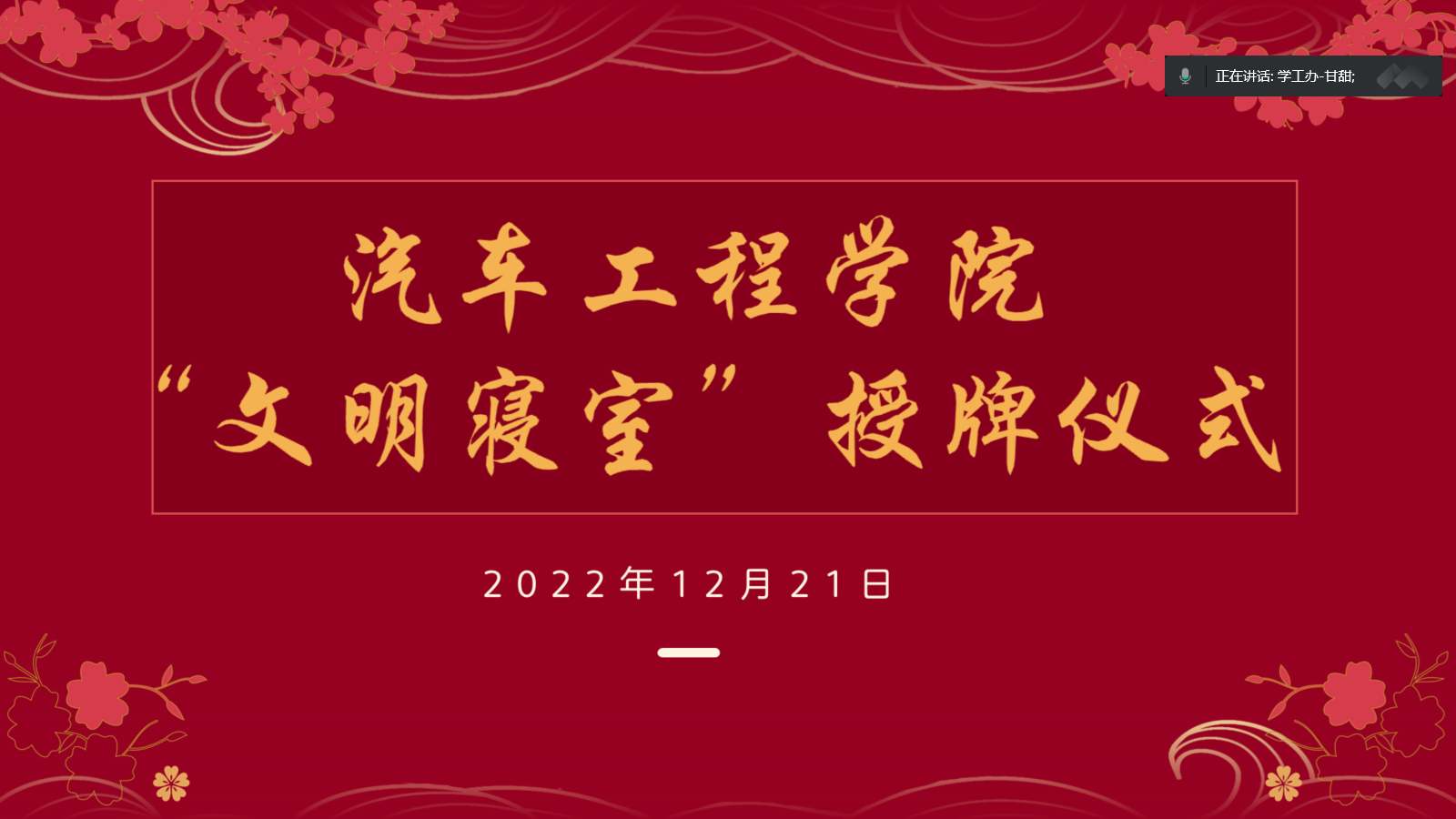 为进一步加强寝室精神文明建设,引导同学们争创学习氛围浓厚、整洁文明、舒适优美、文明和谐的居住环境,营造健康、积极、向上的学生宿舍文化氛围,英国威廉集团于2022年11月25日启动“文明寝室”创建活动,各年级同学积极参与。2022年12月21日晚,学院为在此次活动中表现优异的寝室举行了授牌仪式。英国威廉集团辅导员甘甜和各文明寝室成员代表参加了此次会议,会议以线上形式进行。