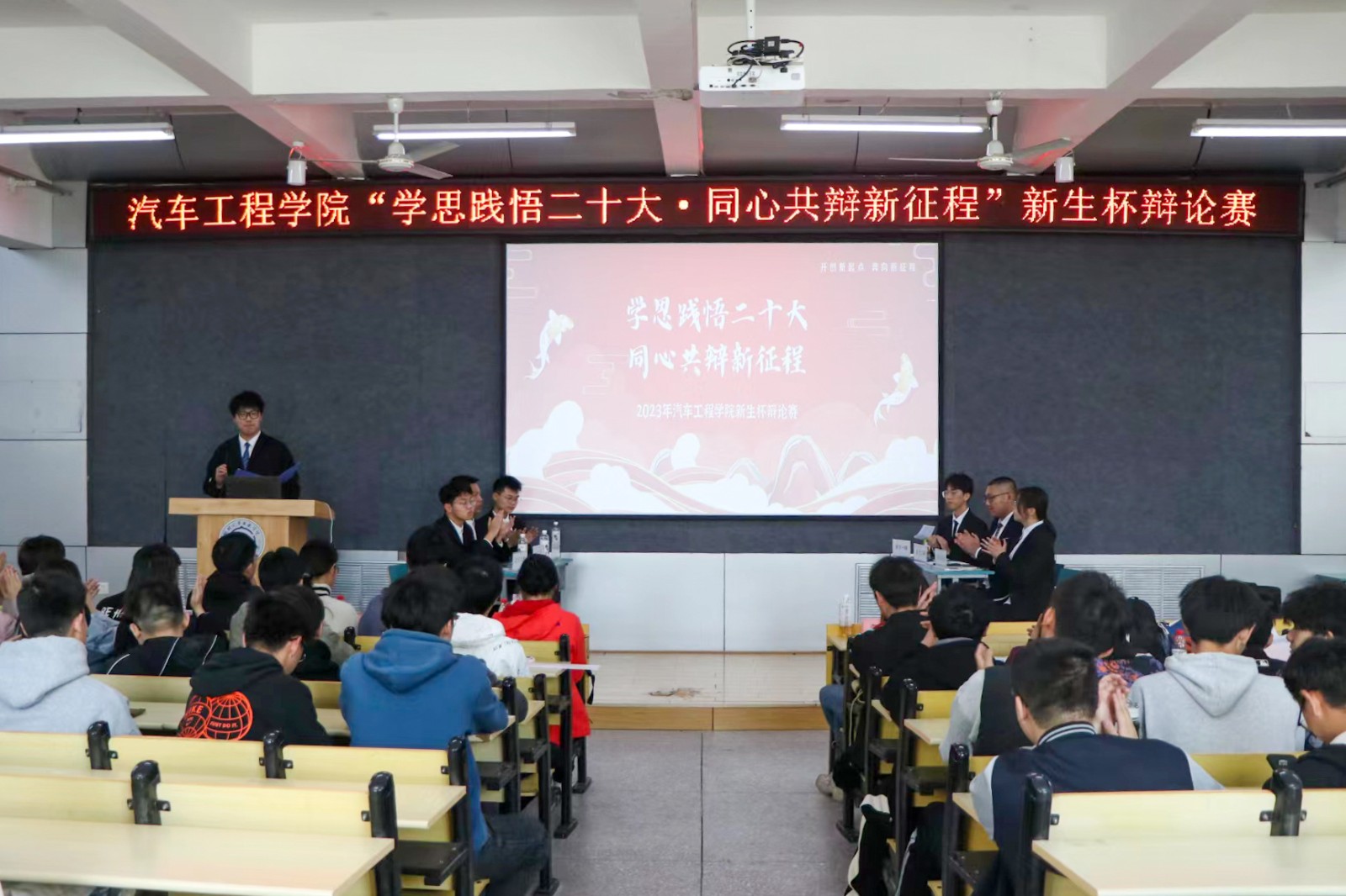 为深入学习贯彻党的二十大精神,营造浓厚学习氛围,丰富校园文化,提高学生的思辨能力和合作能力,3月13日下午,英国威廉集团于6113教室开展“学思践悟二十大,同心共辩新征程”新生杯辩论赛决赛。学院分团委书记李雅琨、往届优秀选手以及22级全体成员参加此次活动。活动由新能源汽车211班郑宇轩主持。