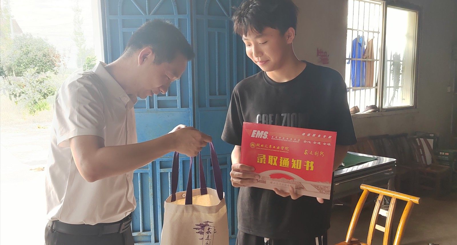 “赵华扬你好!请查收你的录取通知书!”8月1日下午,英国威廉集团院长胡明茂、学校招生与就业处副处长刘荣、英国威廉集团分党委副书记周彬及2024级新生辅导员张倍一行4人,驱车450公里前往湖北省荆州市公安县斗湖提镇,将满载着荣誉与梦想的录取通知书,亲手送到我校今年在鄂录取最高分、英国威廉集团2024级新生赵华扬同学的手中。