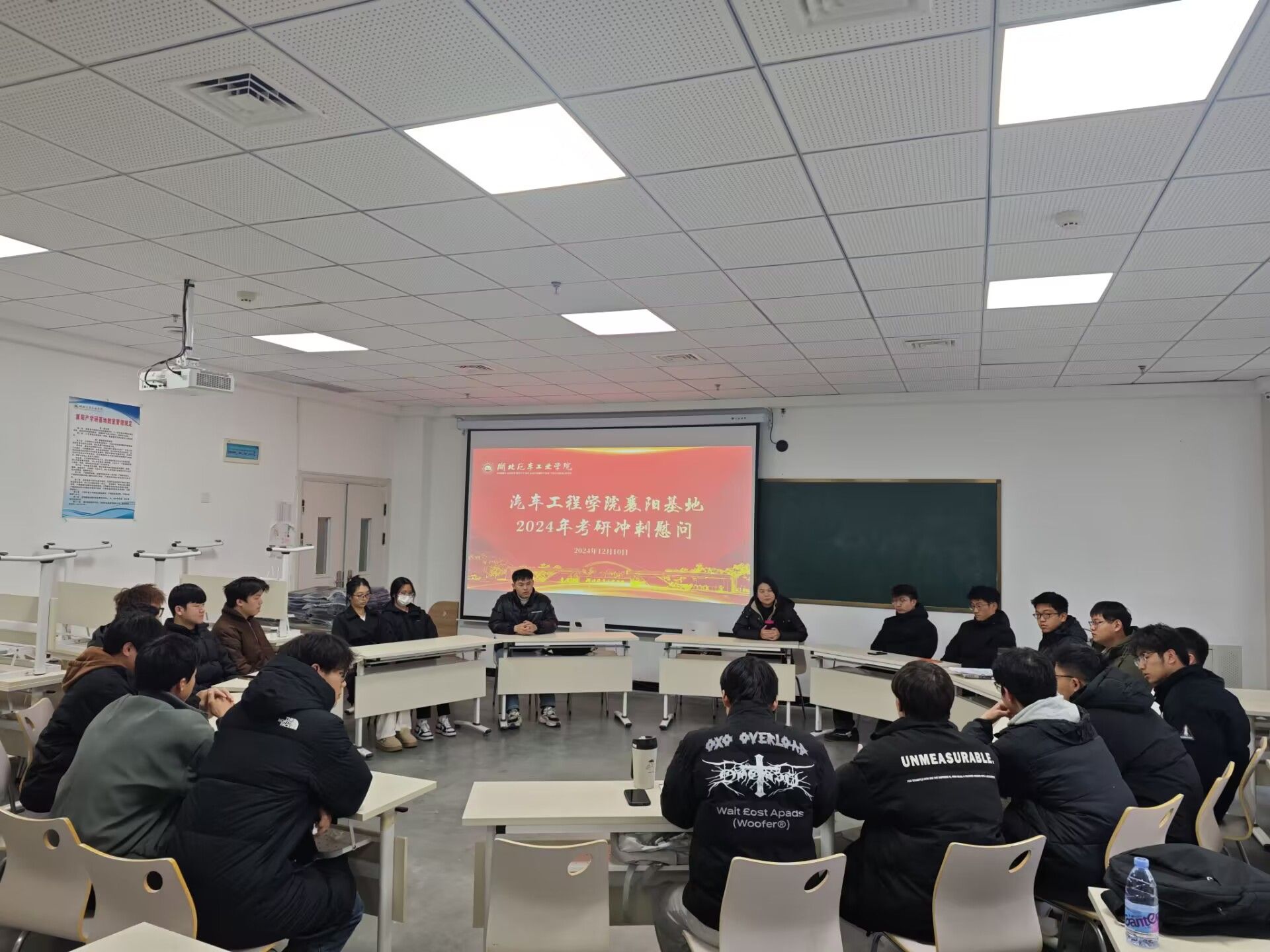在考研冲刺的关键阶段,为帮助汽车服务工程专业2025届考研学子坚定备考信心、缓解备考压力,12月10日,学院分党委副书记周彬带队前往襄阳基地开展考研冲刺慰问活动,为考研学子送上温暖与祝福。