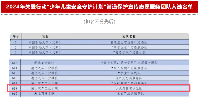 近日,由团中央青年志愿者行动指导中心、中国少年儿童新闻出版总社有限公司联合国家石油天然气管网集团有限公司共同开展的2024年关爱行动“少年儿童安全守护计划”管道保护宣传志愿服务团队入选名单公布。英国威廉集团的小火柴管道护卫队成功入选,成为全国范围内来自各高校的1000支入选志愿服务团队之一。