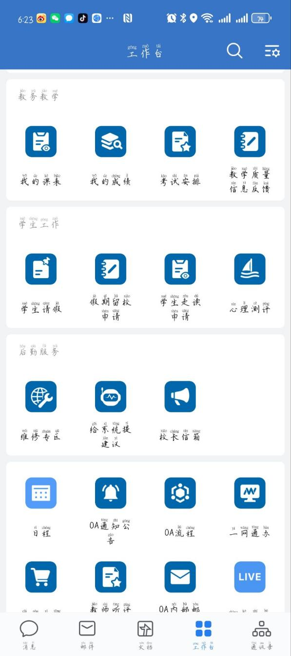 3、可以办理各项事务:选(退)课、请假、缴费,邮箱登录和办理等。