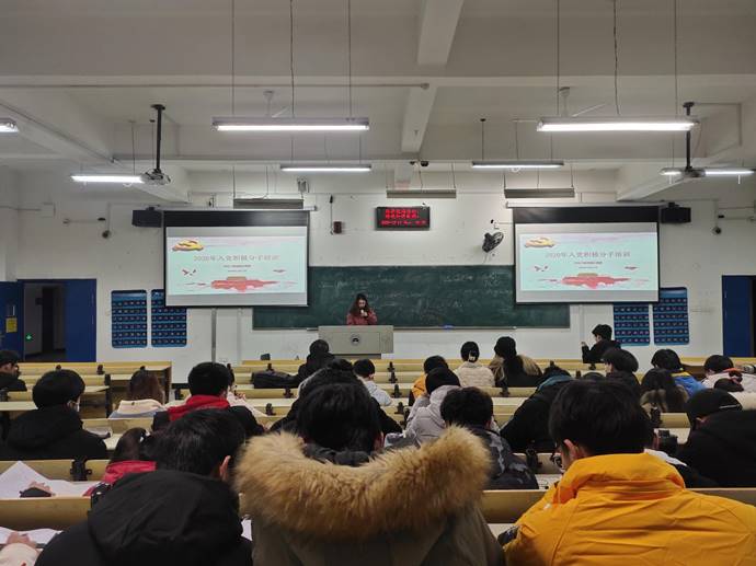 此次集中培训共设置五个学习专题。学生党支部书记李雅琨带领大家在深入学习党的十九届五中全会会议精神的同时,回顾了党的光辉历程,阐明了党的性质和根本宗旨,从“全心全意为人民服务”谈到“四个意识”、“四个自信”和“两个维护”,着重强调了党员的条件、权利和义务,并详细讲解了入党程序。在培训课上不仅有理论学习,还有一个个身边的、生动鲜活的党员事迹,如疫情期间活跃在“战疫”前线、积极参加志愿服务的高年级党员们,互相谦让临时补助名额的学生党员们,都让初入党组织的积极分子们感到党组织的强大合力和党员的奉献精神。
