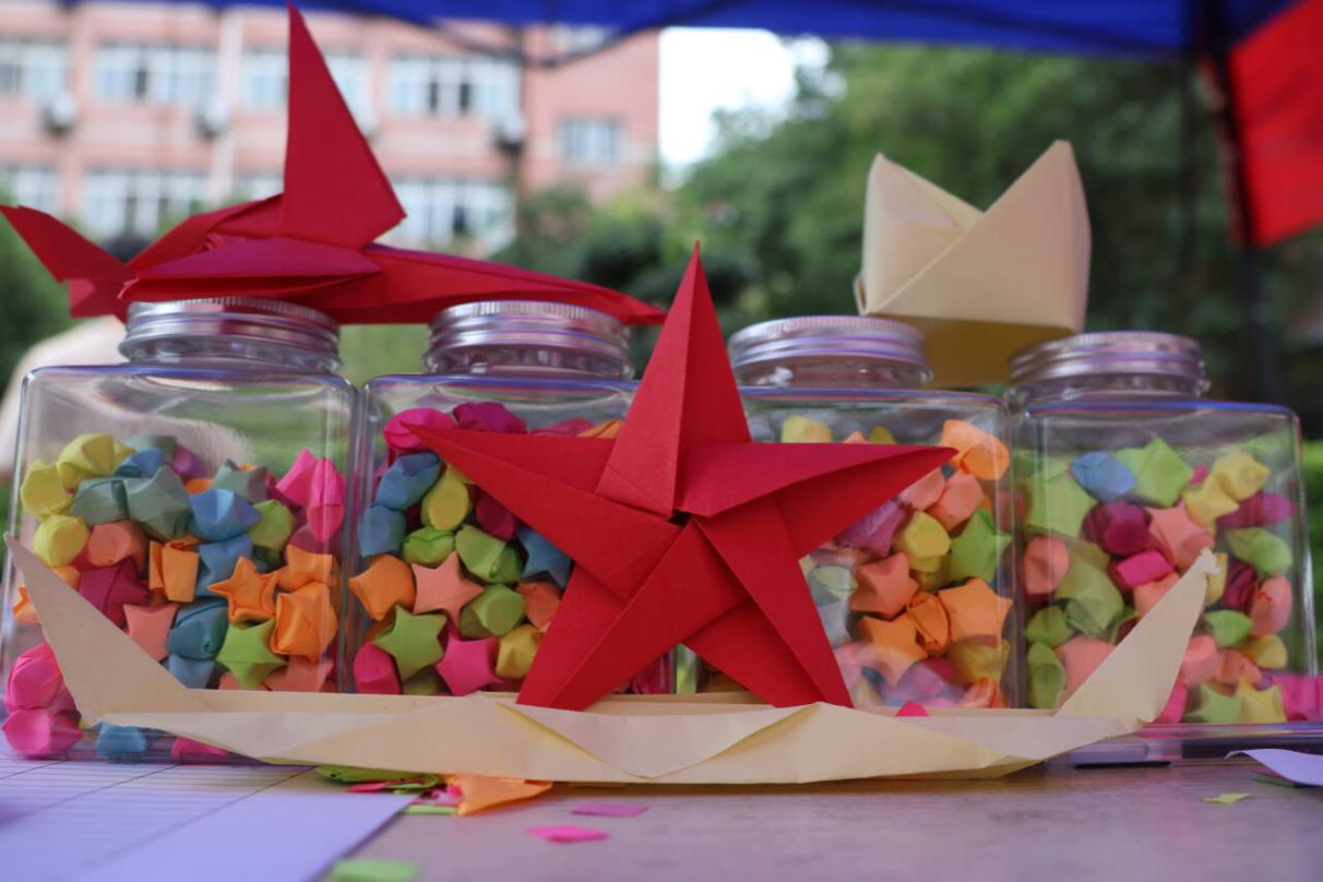 活动现场,工作人员准备了彩色纸条与便签,示范折纸教学,一张张彩纸在学生手中翻转折叠,逐渐化为代表坚毅的五角星,每一件作品与留言都寄托着对祖国的祝福与先烈的缅怀。参与的同学们热烈交流,回溯那段风雨如磐、苦难辉煌的奋斗历程,深刻感悟到民族独立与人民解放的来之不易。