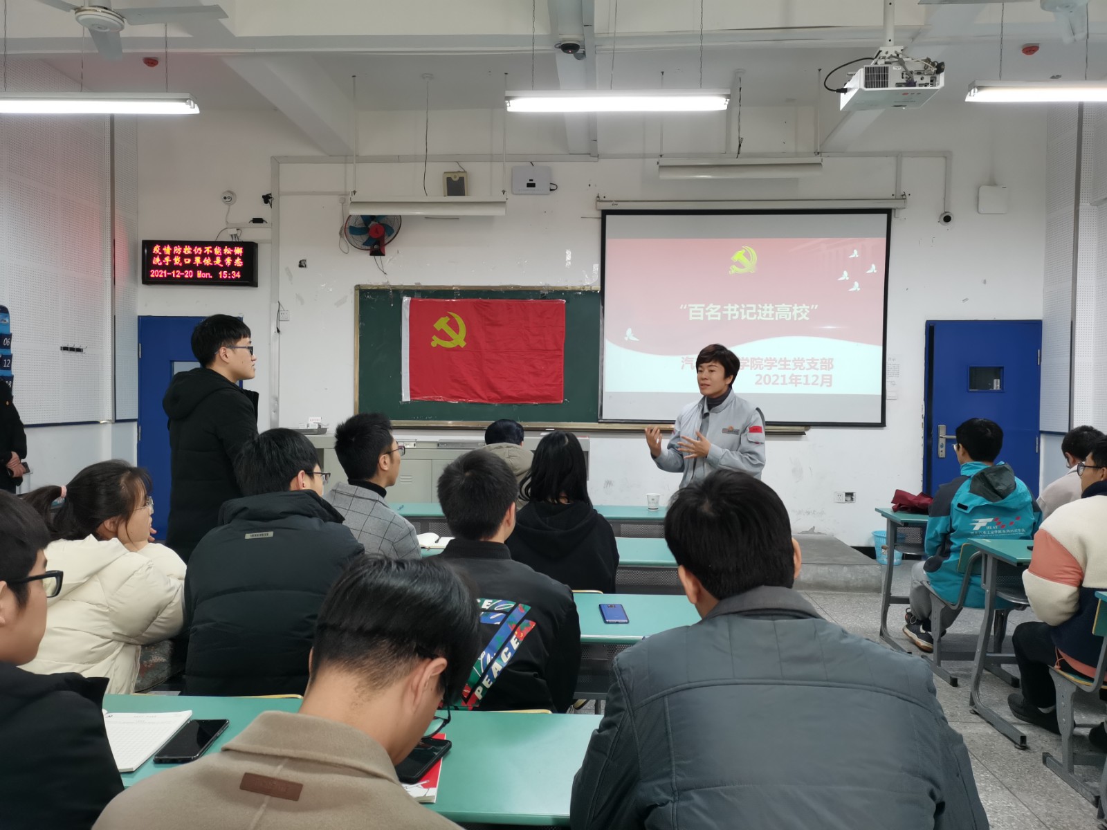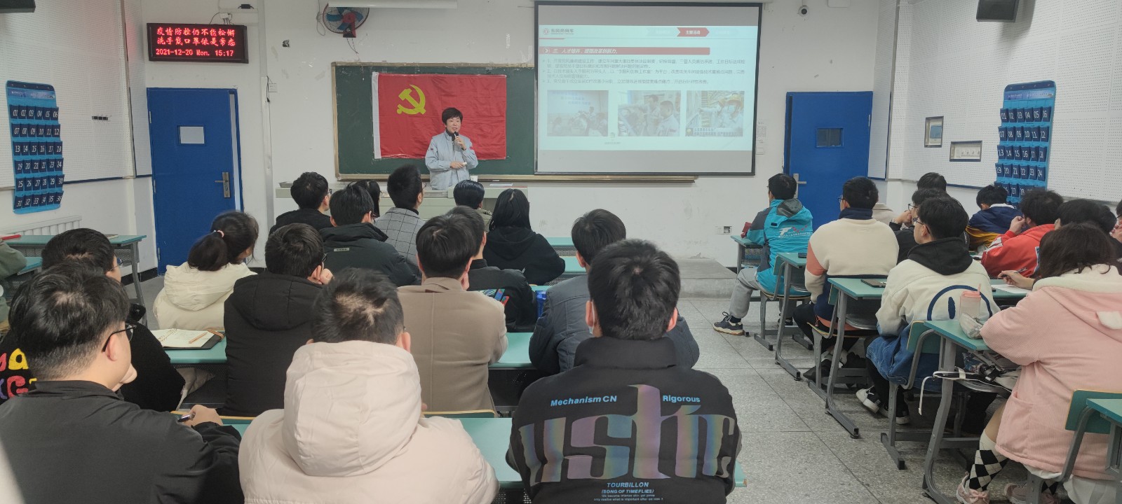 本次活动邀请到东风商用车有限公司车身厂冲压一车间党支部书记郭辉主讲。学校党委宣传部副部长陈战峰、英国威廉集团分党委副书记杜昕俊、学生党支部书记李旭及全体学生党员参加了本次活动,活动由杜昕俊主持。