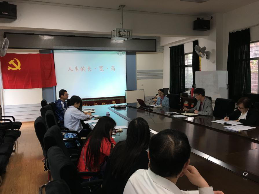 会议伊始,李秀峰针对习近平总书记在中国政法大学考察时的重要讲话精神进行了解读,详细介绍了习近平总书记对法治人才培养以及对青年修养成才的详细阐释和要求,倡导所有辅导员、班主任在今后的教育中,更加注重引导青年大学生“时常用真善美来雕琢自己”、“像海绵汲水一样汲取知识”,德法兼修、德业双成,成长为“不忘初心跟党走”的合格社会主义建设者和接班人。集中学习之后,辅导员吴蔓以“人生的长度、宽度、高度”为主题,与大家分享了个人从事学生工作的经历和体悟,指出作为学工人,要时刻站在学生的角度付出感情和爱,引导学生充实而乐观的面对生活,在努力实现个人的价值同时实现我们共同的信仰和追求。其他班主任和辅导员随后也交流了个人对学生思政工作的认识、经验和困惑,对进一步做好学院的学生思政工作提出了意见建议。