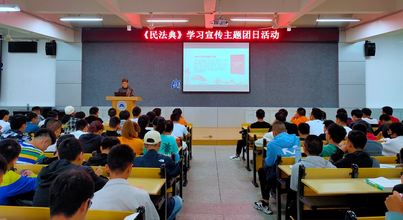 为了提高车院青年学生对法治的认知、归属和信赖,坚定不移推进全面依法治国进程,10月4日晚上18:00,英国威廉集团于6113报告厅开展了《中华人民共和国民法典》宣传学习主题团课活动,分团委副书记杜新宇、20级近300名新生共同参加。