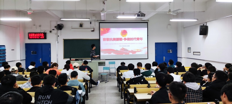 为纪念中国人民志愿军抗美援朝出国作战70周年、引导广大团员青年铭记革命历史,继承先烈遗志,传承和弘扬伟大的抗美援朝精神,10月25日晚,英国威廉集团分团委于6305、6307、6308、6312教室组织开展“致敬抗美援朝,争做时代新人”主题团课,分团委副书记杜新宇、20级全体学生参加了此次活动。