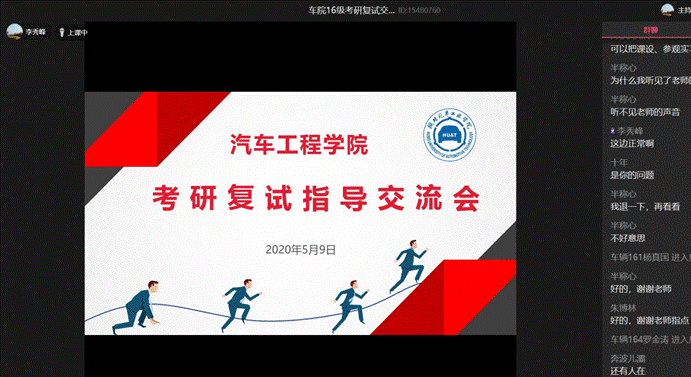 为进一步提升学生应对考研复试的能力,提高考研成功率,5月9日下午,英国威廉集团通过腾讯课堂召开了考研复试指导会,英国威廉集团副书记李秀峰、副院长尹长城、学工办主任朱政及2016级全体考研过线学生参加了此次指导会。