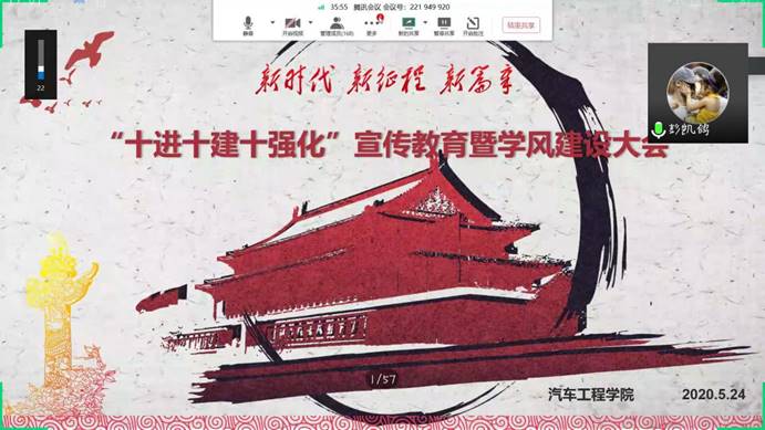 为全面落实学校“十进十建十强化”宣传教育工作计划,切实推进党纪党规和监察法入脑入心,以纪律和作风建设引领学风建设,英国威廉集团于5月24日19:00利用腾讯会议平台召开了“十进十建十强化”宣传教育暨学风建设大会。分团委书记胡霄寒、学工办主任朱政、分团委副书记王方勇以及19级两百余名同学参加了此次会议。