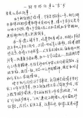 钟毓宁在“家书”中写到,因为新冠疫情,2020年是特殊的一年,我们湖北能够战胜疫情取得决定性成果,得力于家乡父老的齐心协力,得力于全国人民的无私支援和守望相助,这一切都应该感谢我们党的坚强领导。钟毓宁谈到,从刚刚过去的端午节缅怀先哲的“路漫漫其修远兮,吾将上下而求索”、“人生自古谁无死、留取丹心照汗青”等古典诗词中,我们能够感受到中华儿女一贯的爱国敬业、乐观坚韧、团结一致、万众一心的中国精神,从而能进一步激发和培育我们自己的家国情怀。
