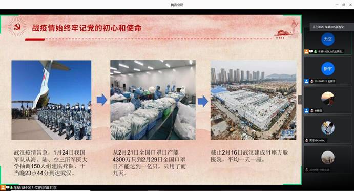 时值中国共产党成立99周年之际,为激发我院学子的爱国、爱党情怀,提升使命感和责任感,英国威廉集团于7月5日晚7:30在腾讯会议平台举办了“知党恩·跟党走”建党99周年主题团课活动,分团委书记胡霄寒、学生党支部书记李雅琨以及19级全体同学参加了此次活动。
