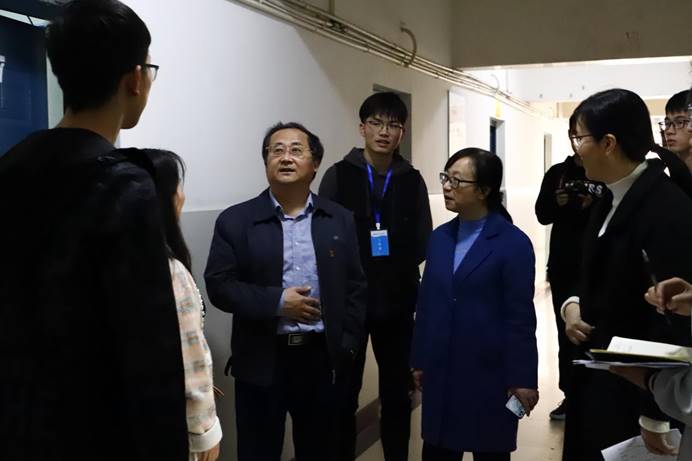 进入寝室后,钟毓宁仔细检查了宿舍的卫生情况,询问同学们在日常生活中遇到的问题并给予了改善建议,了解同学们最近的学习情况,并向同学们讲解汽车行业未来的发展方向。在桃四306宿舍,钟毓宁与“学海领航”结对学生、车辆181班杜新宇进行了深入细致的交流,“英语四六级通过了吗?参加过学科竞赛没?专业课难不难?平时都参加了什么学生活动?生活上有没有什么困难?”“不要安于眼前取得的成绩,一定要志存高远,车院的学生要立足于民族汽车产业的发展需要来与时俱进、挑战未来!”亲切温暖的关怀让学生备受鼓舞。冯樱也鼓励大家紧扣时代发展率先通过英语四级,再挑战六级,不要惧怕失败要反复尝试和努力。车院的课程相对较多,也逐年递增专业学习的难度,需要同学们认认真真的听讲、扎扎实实的吸收,同一个寝室内相互监督、共同进步,形成良好的寝室氛围和文化。