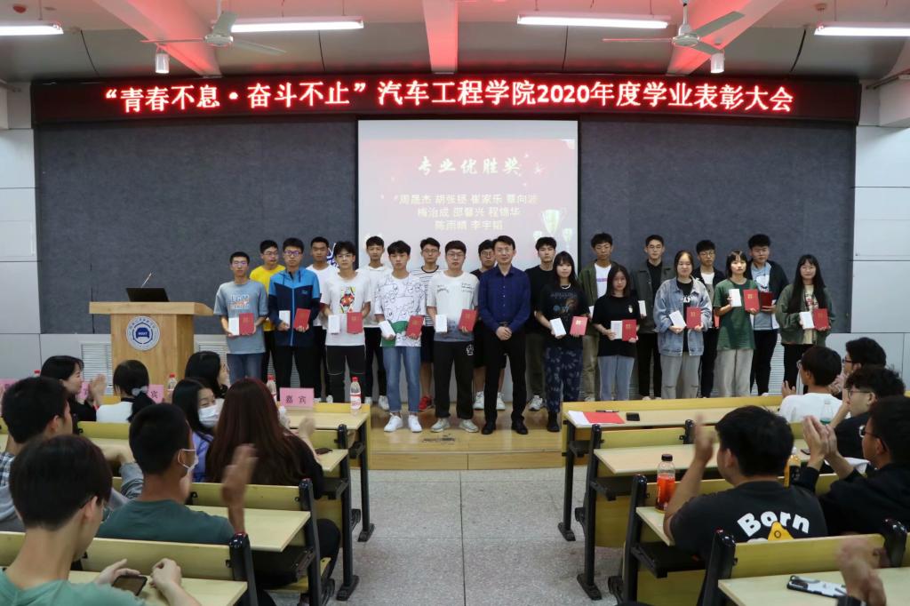 大会伊始,冯樱院长宣读了表彰文件,对杨旭等36名同学荣获“专业优胜奖”、崔津豪等5名同学荣获“单科满分奖”、车辆201班等4个班级荣获“优良学风班”、李四北#402等4个宿舍荣获“优良学风宿舍”表达了诚挚的祝贺!她说到,“你们无疑是今天校园里最靓丽的风景线,在你们身上集中体现了我们车院学子特有的优良品质和拼搏精神!学海无涯,愿每一位同学都能不断积累突破,成就更加美好的自己!”