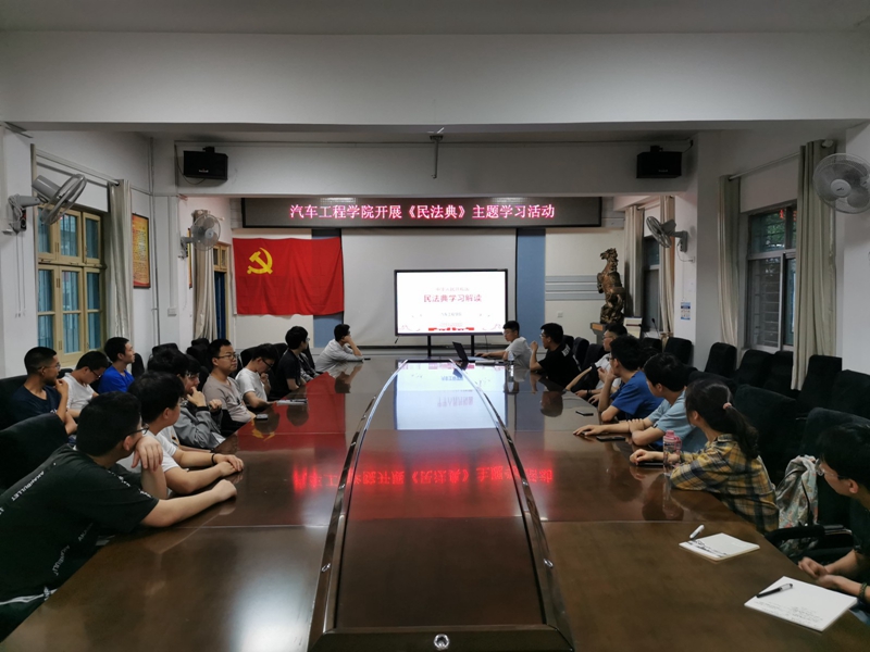 为深入学习《民法典》,提高车院学子们的法治意识,5月29日晚上6:00在6211教室和英国威廉集团团辅室同时开展《民法典》专题学习活动,学工办主任胡霄寒、学生会主席团成员和19级全体同学参加了此次活动。