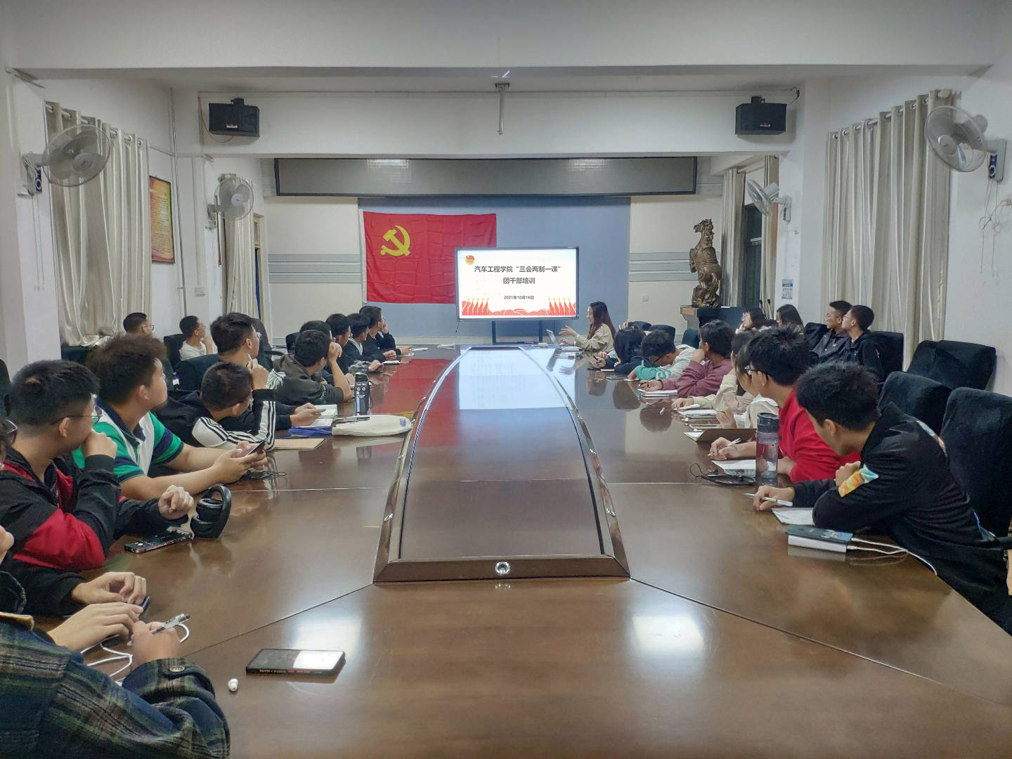 “三会两制一课”是团的组织生活的基本制度,是团内政治生活的重要内容,是推进从严治团的基础性工作。为便于全院团支部和广大团员学习领会执行好“三会两制一课”制度的落实,提升各基层团支部的凝聚力,英国威廉集团分团委于2021年10月16日19时在汽车大院二楼会议室组织21级全体团员进行了学习。辅导员李键雯、分团委学生干部以及21级全体团员参加了此次培训会。