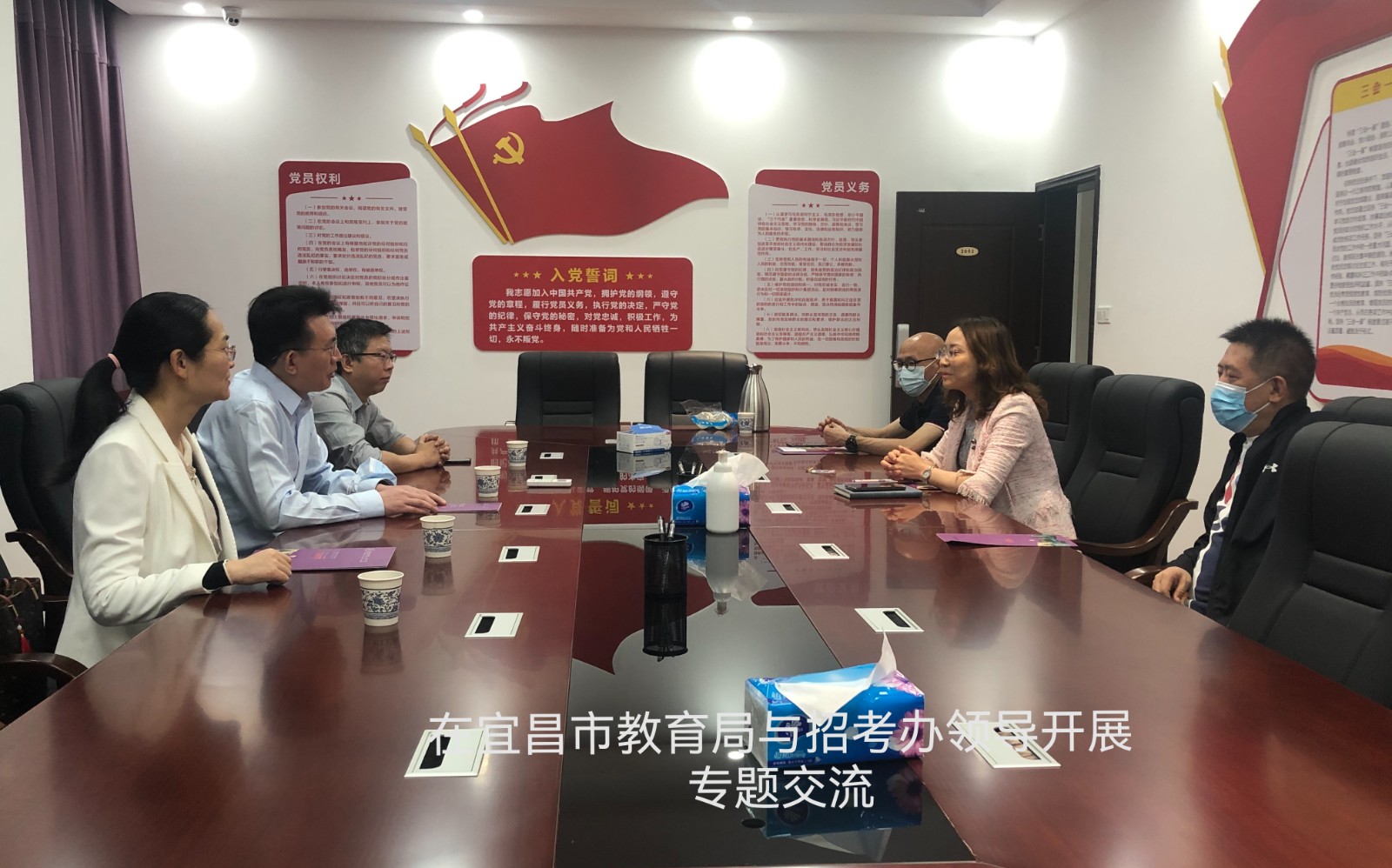 在符合当地疫情防控政策的前提下,宣传组一行拜访了宜昌市教育局领导,并与葛洲坝中学、三峡高中、宜昌东湖高中、宜都一中、宜都二中、枝江一中、枝江二中、当阳一中、当阳二中、长阳一中、长阳二中的校领导、高三年级主任及班主任等进行了座谈和交流,发放了招生宣传册,对长阳二中进行了优质生源基地授牌。