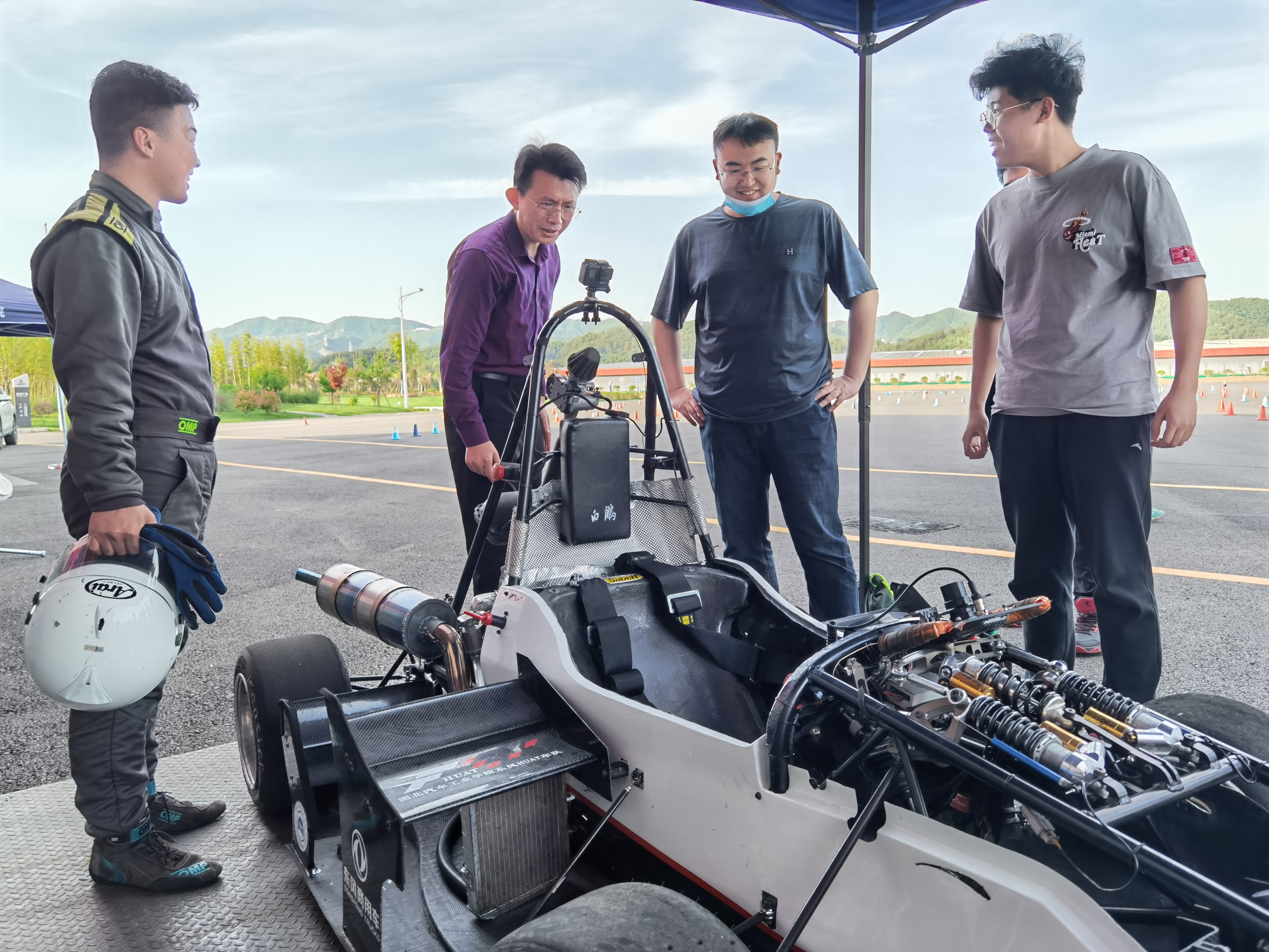 5月2日,英国威廉集团李秀峰书记和在车队指导老师金家琛等老师的陪同下前来慰问,队长杨建宇为老师们讲解了车辆目前的状态以及未来几天的任务安排,李秀峰书记与队员们进行深入交谈,对队员们吃苦耐劳的精神表示赞扬,为队员们加油鼓劲。5月4日下午,在对场地进行恢复打扫后,车队全体成员返回学校,并针对外出练车期间出现的问题进行研讨,对赛车进行保养和调整,改进相关数据,充分备赛。