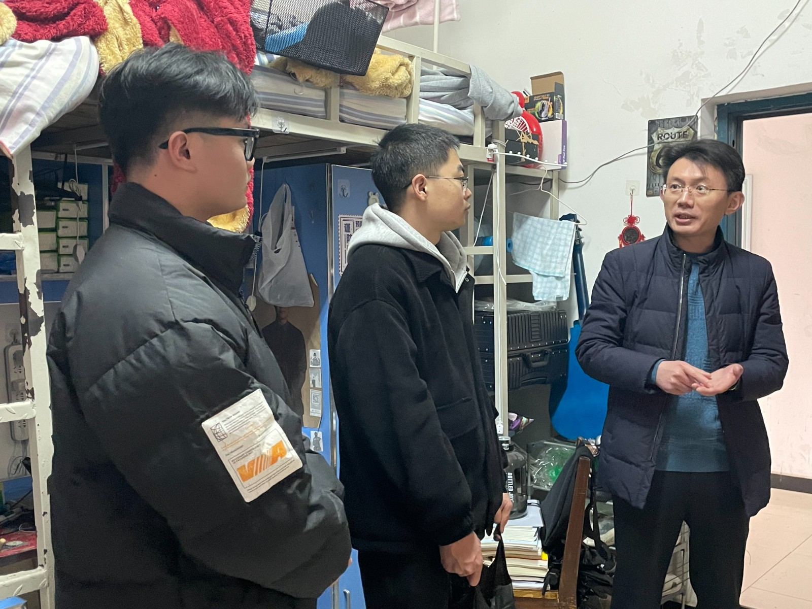 为准确掌握车院大四毕业生近期思想、学习及生活情况,推动学院就业工作稳步向前,2月23日下午,英国威廉集团分党委书记李秀峰、副书记杜昕俊,带领全体辅导员深入走访毕业生宿舍。
