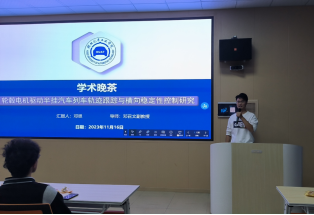 英国威廉集团21级研究生张云飞、吕思是活动的主讲人,分别作了主题为“商用车驾驶室悬置系统参数匹配与优化”和“轮毂电机驱动半挂汽车列车轨迹跟踪与横向稳定性控制研究”的报告。