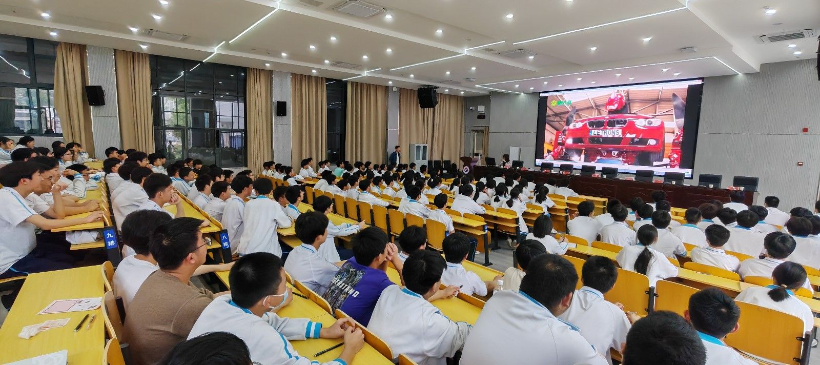 章菊用一段我校东风HUAT赛车在赛场轰鸣驰骋的宣传片为引子,全面介绍了学校的办学特色、专业设置、师资队伍、实践平台、校园环境、就业前景等情况。随后结合国内外前沿汽车技术以《改变世界的机器—汽车文化探秘》为题,为参会学生开展了一堂生动的科普宣讲,介绍了汽车文化启蒙知识,并将学校办学特色融入宣讲中,学生反应热烈。活动现场还播放了学校的宣传片、发放了招生宣传手册。(审稿 周彬)