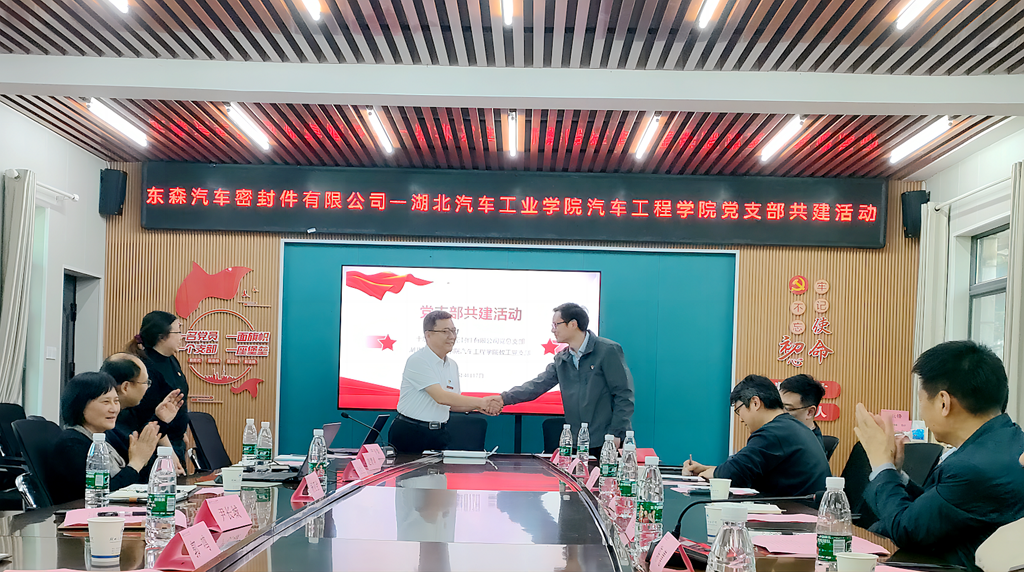 王镇介绍了学校基本情况和“三步走”发展战略,并表示此次活动是与十堰东森汽车密封件有限公司校企支部共建工作的里程碑,是探索高校企业融合的新范本,希望通过此次活动促进校企双方在项目协调、人员对接、学科共建等方面深化合作,实现“一融双高”。