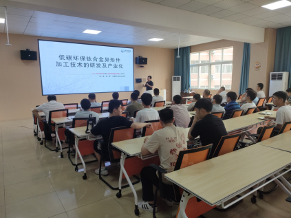 会上,张豪胤博士首先以低碳环保钛合金的技术开始说明,接着对材料、材料加工方法、研发及产业化发展,对碳环保工艺钛合金异形件的研发及产业化进行了简单汇报,并把自己的研究方向与产业化结合的经验做了介绍。