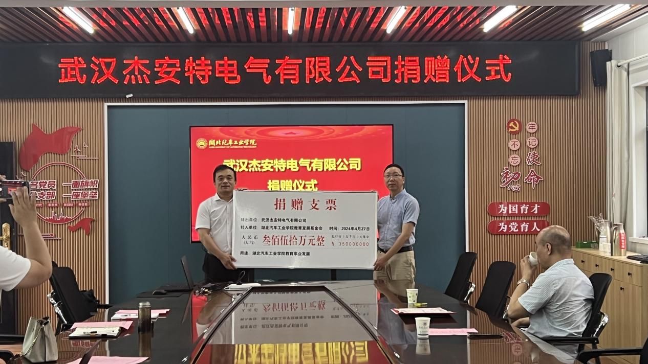 胡明茂感谢武汉杰安特电气有限公司对学校的慷慨捐赠以及对教育事业发展的关心,他强调要把握当下和着眼未来,期待双方能够合作长远,实现双赢。