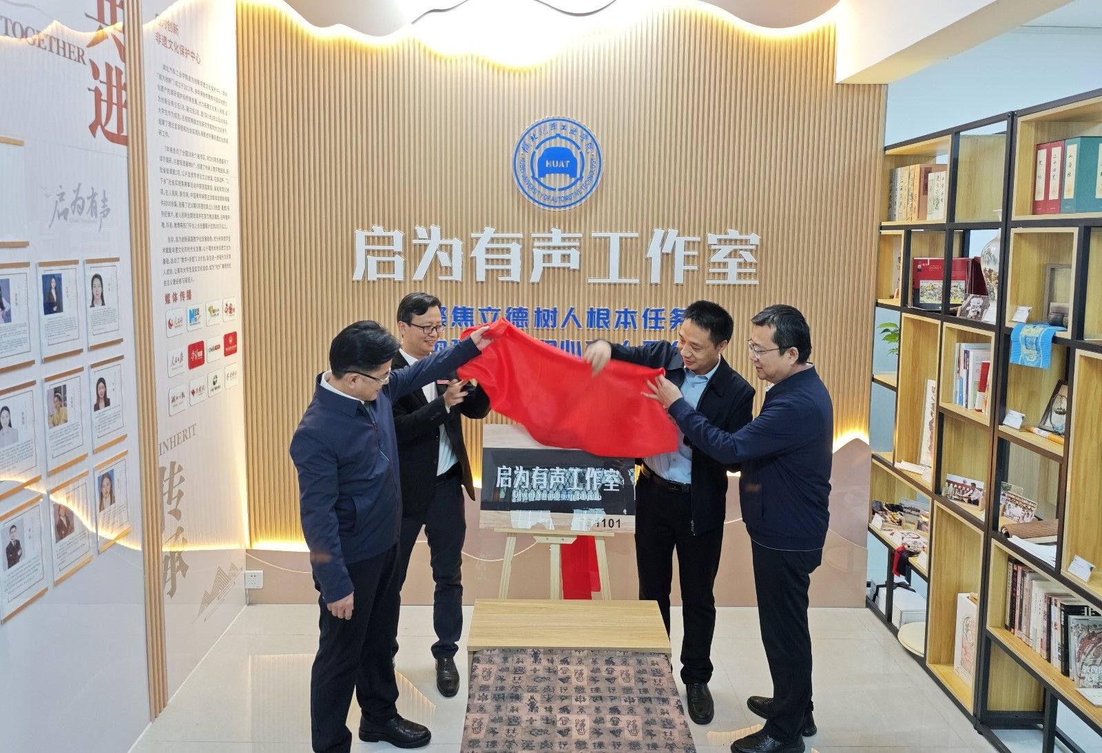 仪式由学院分党委书记杨亚会主持。杨亚会简要介绍了“启为有声”工作室的建设背景、目的和筹建过程,向各级领导和相关部门对学院学生工作长期以来的关心支持表示衷心的感谢。