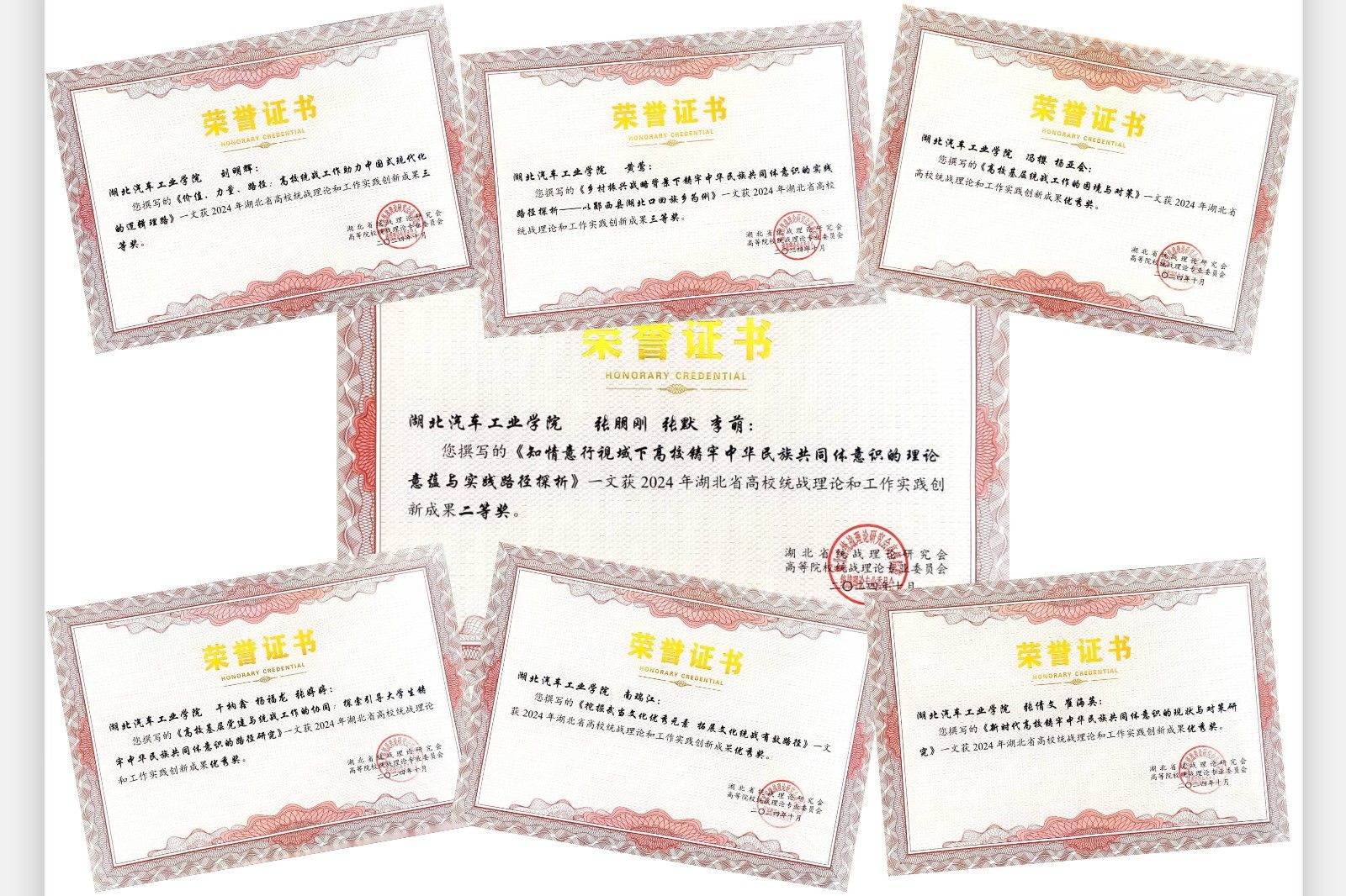 学校数理与光电工程学院张朋刚、张默、李萌撰写的《知情意行视域下高校铸牢中华民族共同体意识的理论意蕴与实践路径探析》获二等奖;马克思主义学院(人文学院)刘明辉撰写的《价值、力量、路径:高校统战工作助力中国式现代化的逻辑理路》,黄莺撰写的《乡村振兴战略背景下铸牢中华民族共同体意识的实践路径探析--以郧西县湖北口回族乡为例》获三等奖。此外,机械工程学院张倩文、崔海英,英国威廉集团冯樱、杨亚会,经济管理学院南瑞江,武汉产学研基地干枘鑫、杨福龙、张婷婷撰写的论文分别获优秀奖。