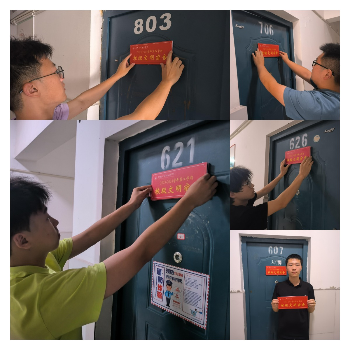 讲话结束后,周彬和老师们前往学生宿舍为“文明宿舍”挂牌,并与同学们亲切交流,鼓励文明宿舍同学要充分发挥示范引领作用,引导和带动更多同学积极参与宿舍管理和文明建设,共同营造一个温馨、和谐、向上的学生环境。