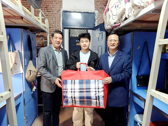 走访过程中,张文学还为部分学生亲手送上了厚厚的冬被,并叮嘱同学,在校期间有任何困难和问题及时向辅导员、班主任等反馈,学校一定尽最大努力为大家解难事、办实事。