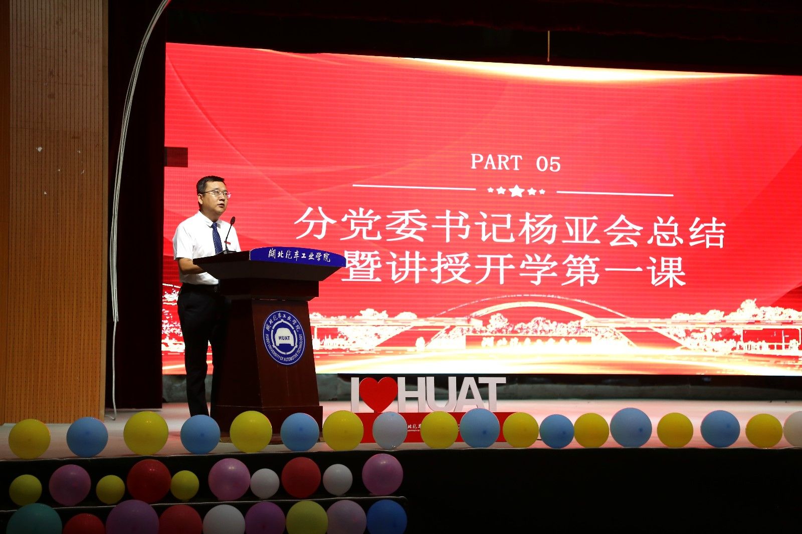 杨亚会作总结讲话,并围绕“为人、为学、为事”三点为2024级新生讲授“开学第一课”,勉励同学们珍惜韶华,矢志成才,能胸怀理想,追梦成年,做一名拥有家国情怀、乐学好学、全面发展的车院人。