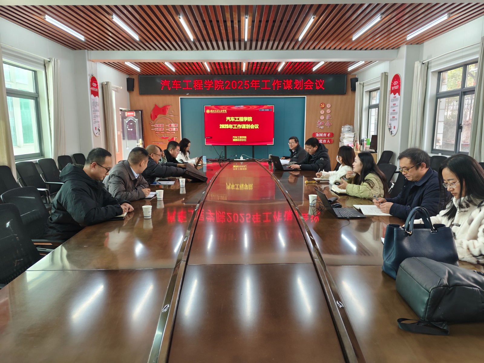 会上,全体参会人员首先进行了政治理论学习,尹长城副院长领学了学校2024年科技创新高质量发展大会上校党委书记张文学、校长王晓、党委副书记李涛三位校领导的讲话精神;力学部主任兼党支部书记王光辉博士领学了《教育强国建设规划纲要(2024—2035年)》,杨亚会对纲要中关于高等教育相关内容进行了深入解读。随后,各位参会人员依据学院2024年工作总结与2025年工作计划,进行汇报交流。学院领导就分管的工作汇报了2025年的计划与重点工作;院长助理与认证和审核评估办公室主任汇报了协管工作;三办主任及分团委书记汇报本职工作与计划;系主任围绕就业、人才引进、经费、企业对接、教研项目及国家基金等汇报;专业负责人聚焦大车辆人才培养方案按知识图谱修订作报告。