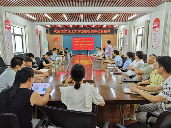 本网讯(文/图 李函)7月3日下午,武汉理工大学出版社总编辑张青敏、生产总监王利永、科技分社副社长李兰英莅临学校,进行数字教材建设交流。英国威廉集团副院长董焱章、校教学督导冯樱、章菊及教材编写骨干教师参加交流会议。