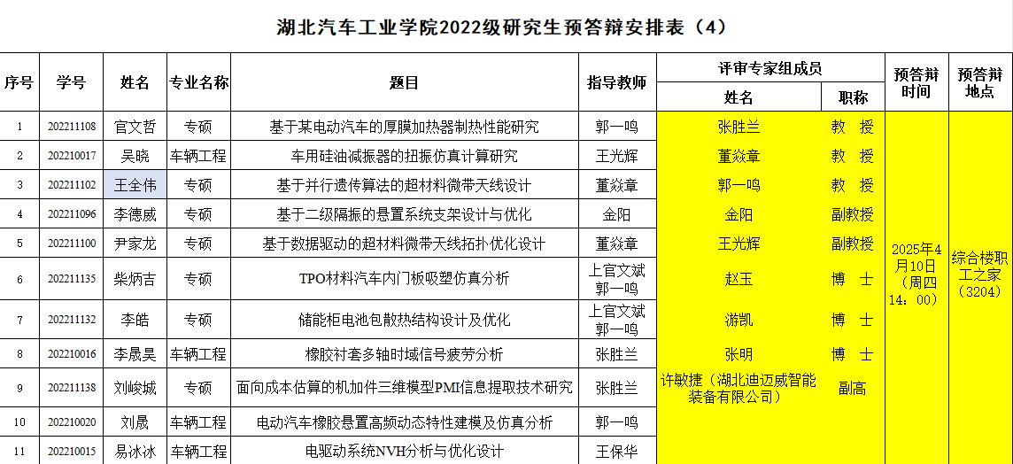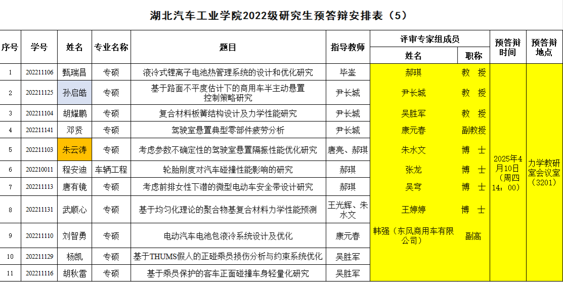 2022级研究生注意,以下是预答辩安排表,请各位同学悉知: