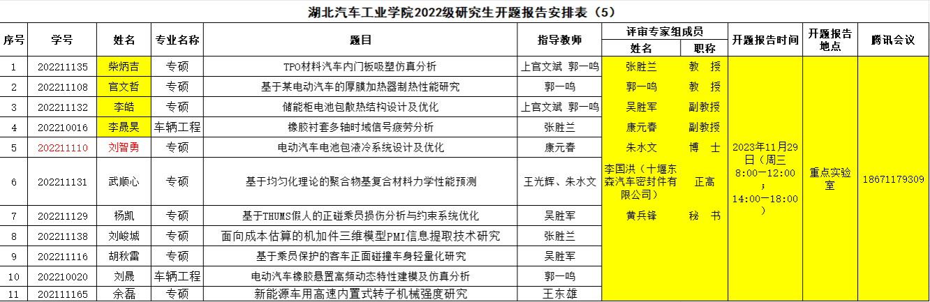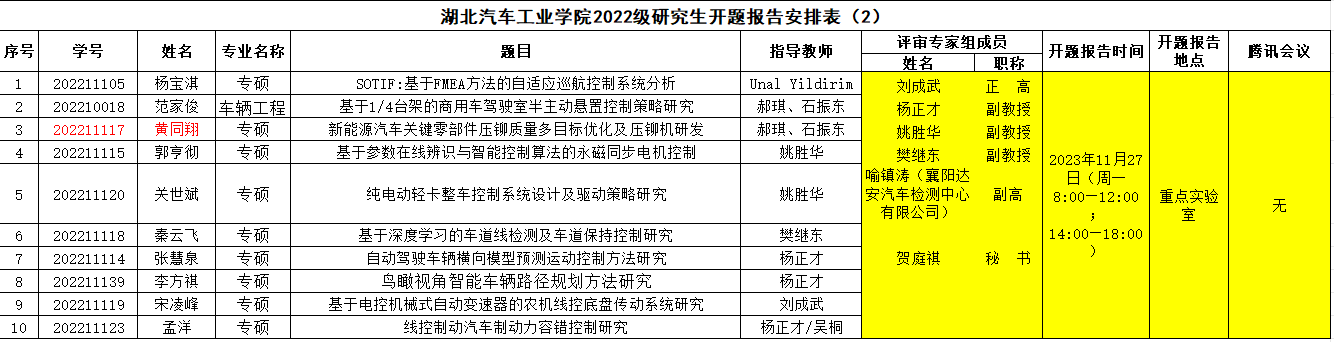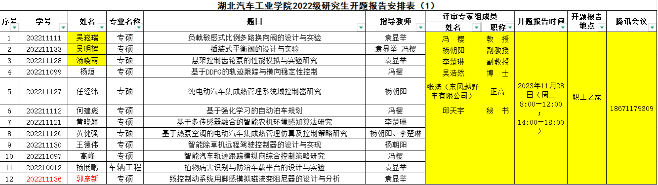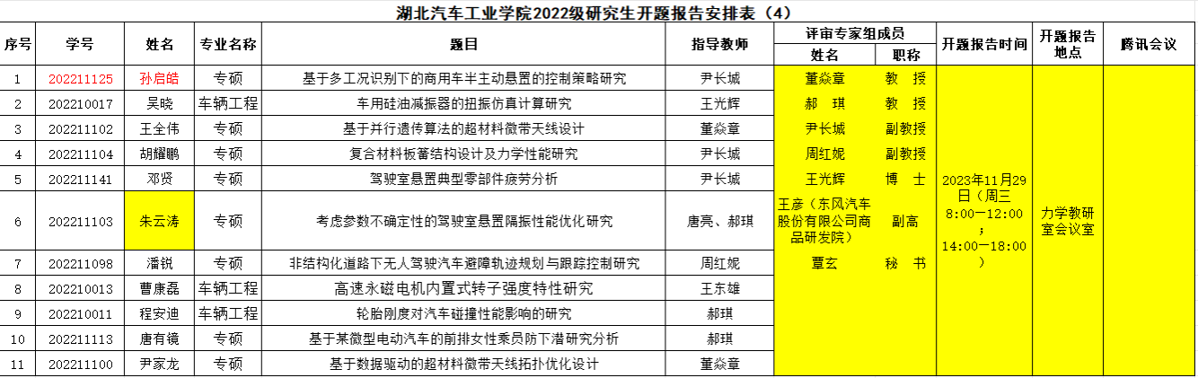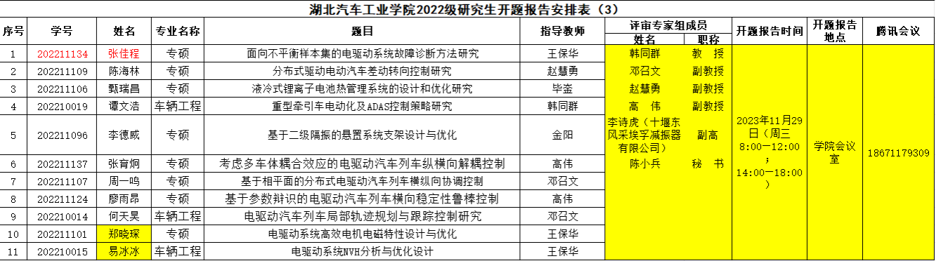 2022级研究生注意,以下是开题答辩安排表,请各位同学悉知: