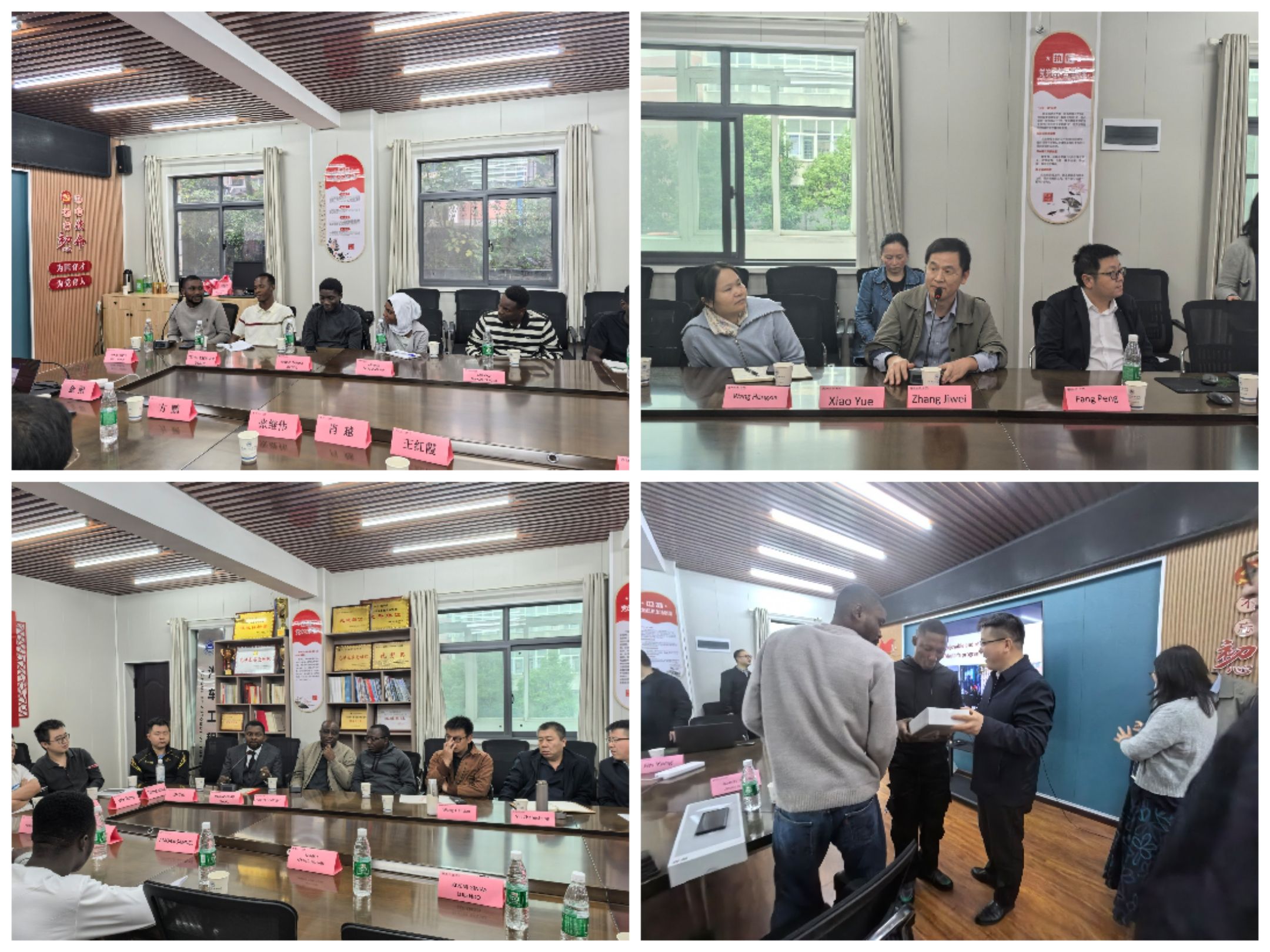 在交流环节中,2025级10位外籍研究生依次发言,分享了入学感受与学习计划。多位导师随后发言,就科研方向、课题选择等给予指导,鼓励新生积极融入学术团队。学院领导再次致辞,强调将全力支持外籍学生的学习和生活,并为他们赠送了台灯作为纪念礼物。