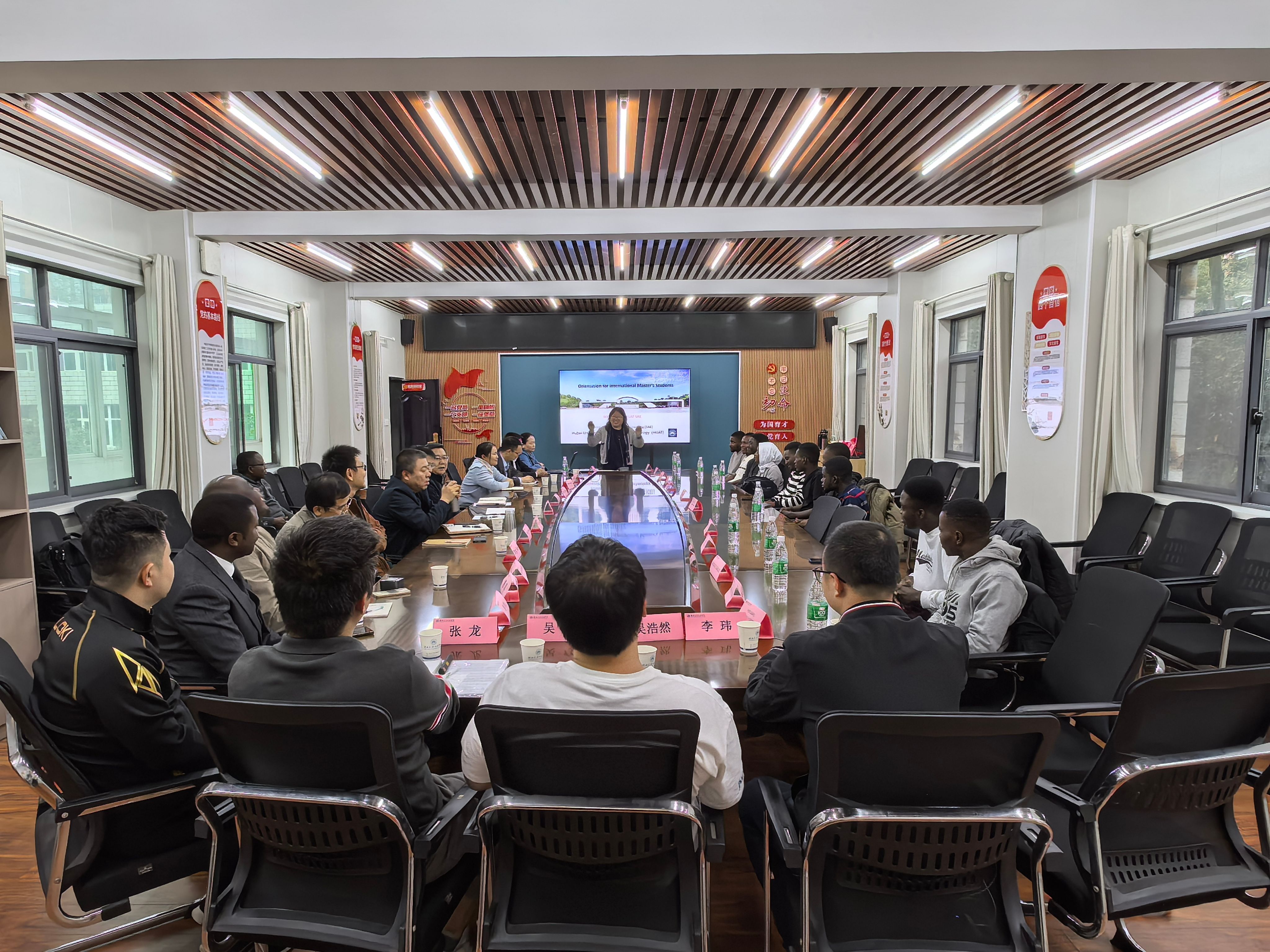 本网讯(文/图 宫雅楠)2025年10月17日下午,英国威廉集团在会议室1201顺利举办2025级外籍研究生新生见面会。学院党委书记杨亚会、院长胡明茂、副院长尹长城、研究生院党委副书记肖越、机械学院副院长王红霞、国际合作处副处长方鹏及留学生导师出席活动。会议由郑冬黎副教授主持,现场气氛热烈。
