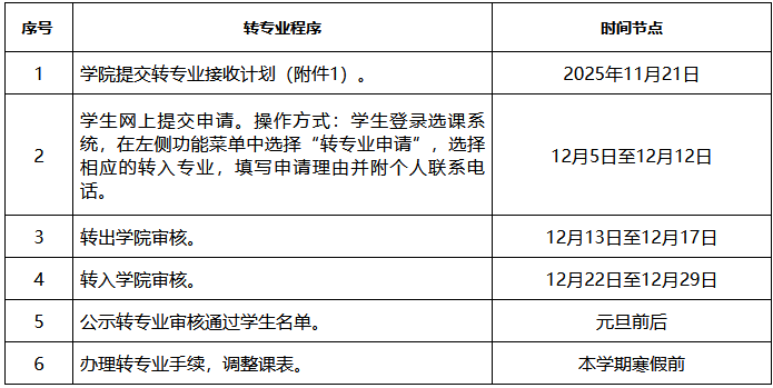 5. 学生在接到通知后一周内到转入学院学生办公室报到,并办理相关手续。