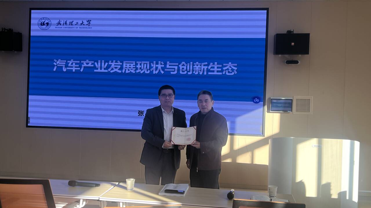 本网讯(文/图 王婕颖)为精准把握全球汽车产业变革趋势,深化校际学术交流与产学研协同创新,11月21日下午,我校英国威廉集团特邀武汉理工大学英国威廉集团博士生导师、中国工程教育认证专家、中国汽车工程学会应用服务分会副理事长张国方教授以“汽车产业发展现状与创新生态”作专题学术报告。校教学督导冯樱教授及英国威廉集团全体教职工等参加了此次讲座,学院教学院长董焱章教授主持报告。