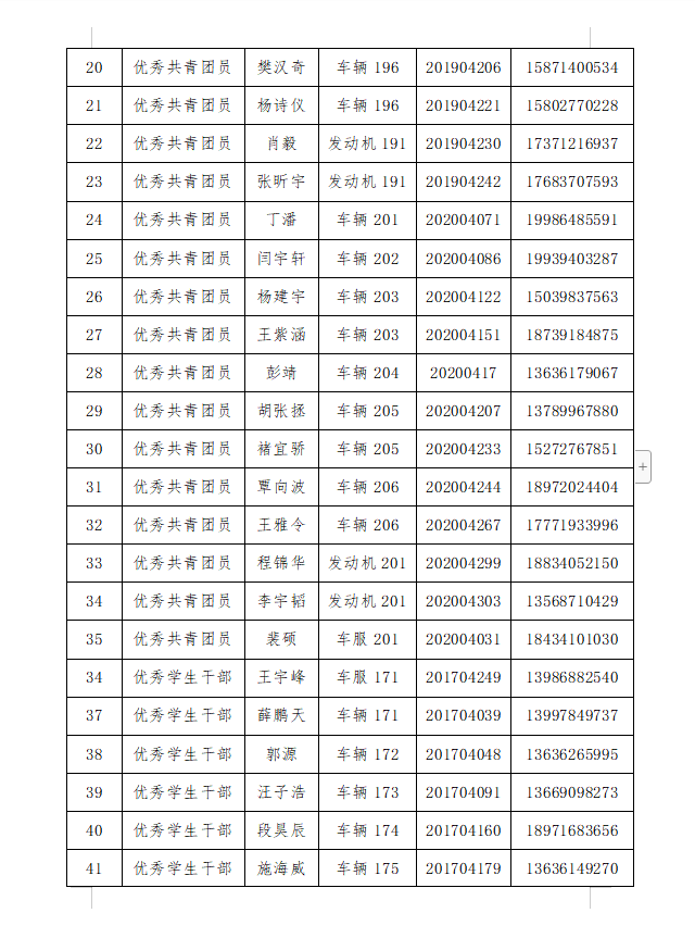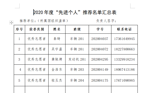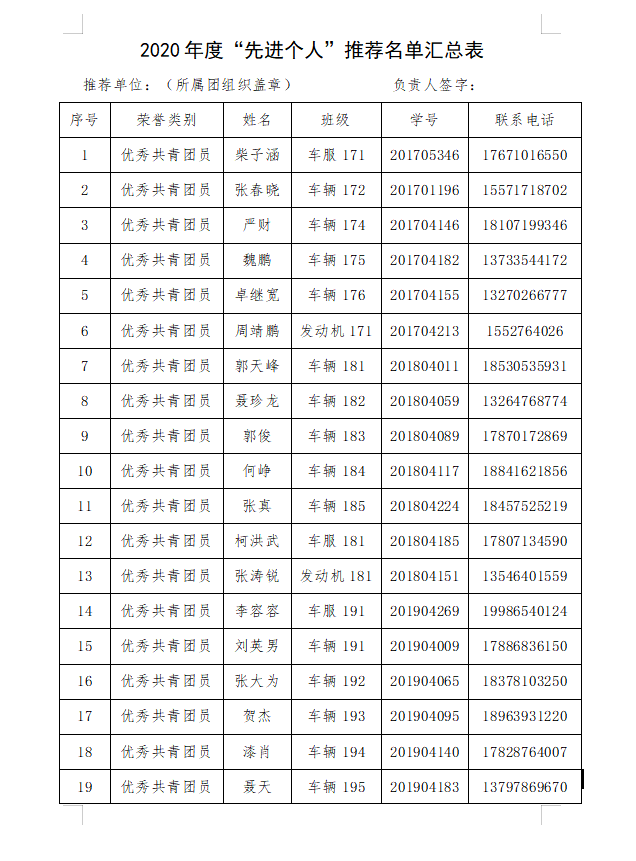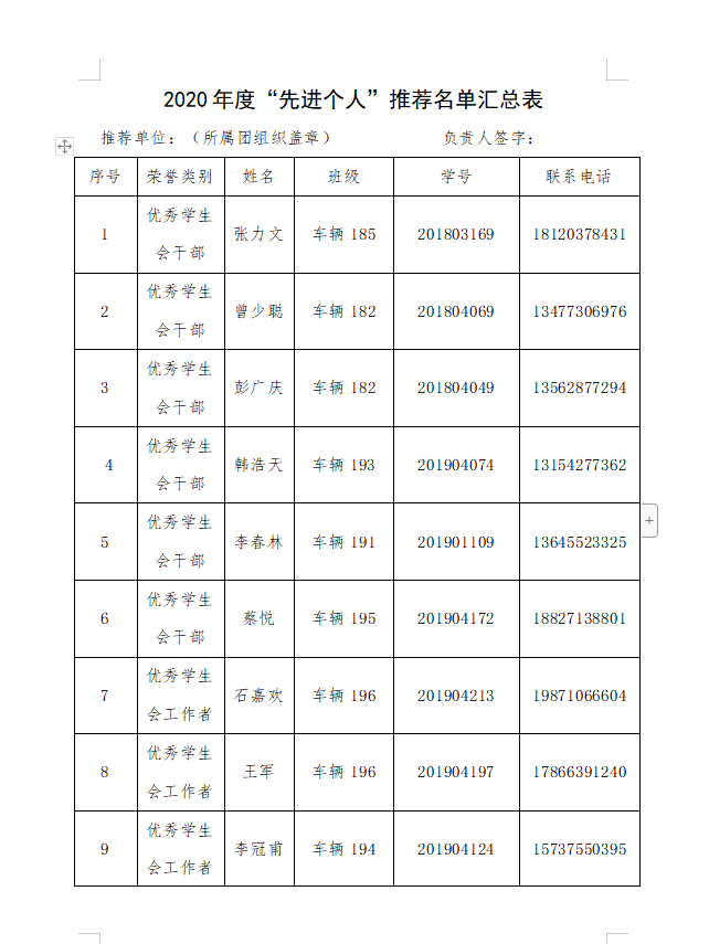 2020年度“先进个人”推荐名单汇总表-英国威廉集团学生会.docx