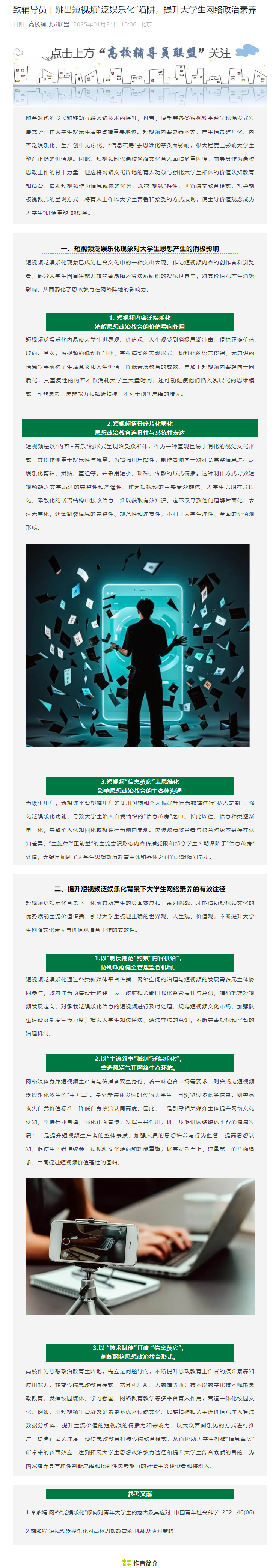 【高校辅导员联盟】致辅导员|跳出短视频“泛娱乐化”陷阱,提升大学生网络政治素养