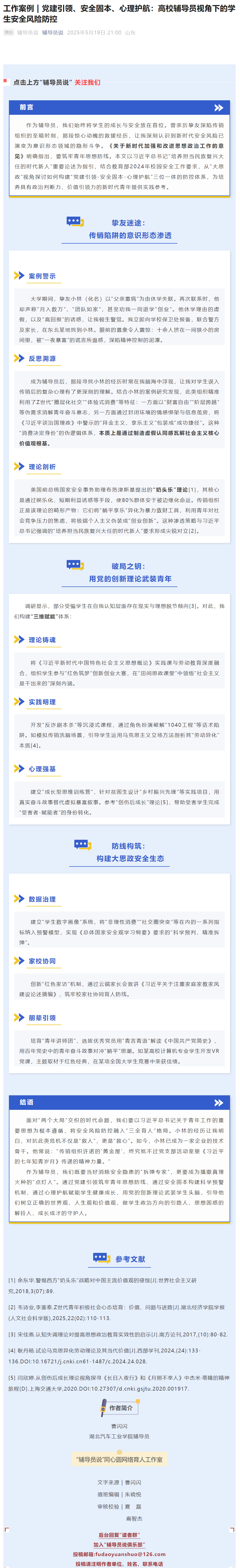 【辅导员说】党建引领、安全固本、心理护航:高校辅导员视角下的学生安全风险防控