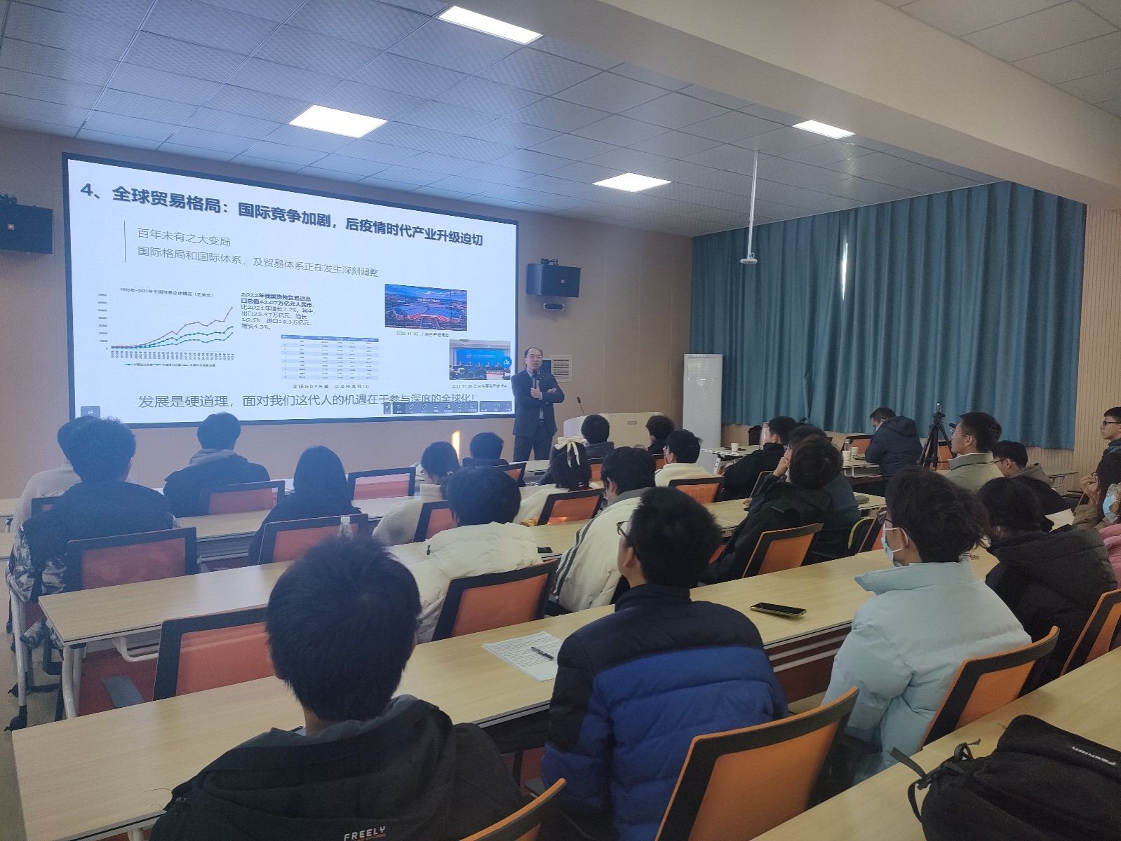 最后,杨正才做了报告总结,本次报告对同学们的学习以及创业都有着非常大的帮助,同时鼓励同学们能够抓住机遇,积极思考,不断向上。